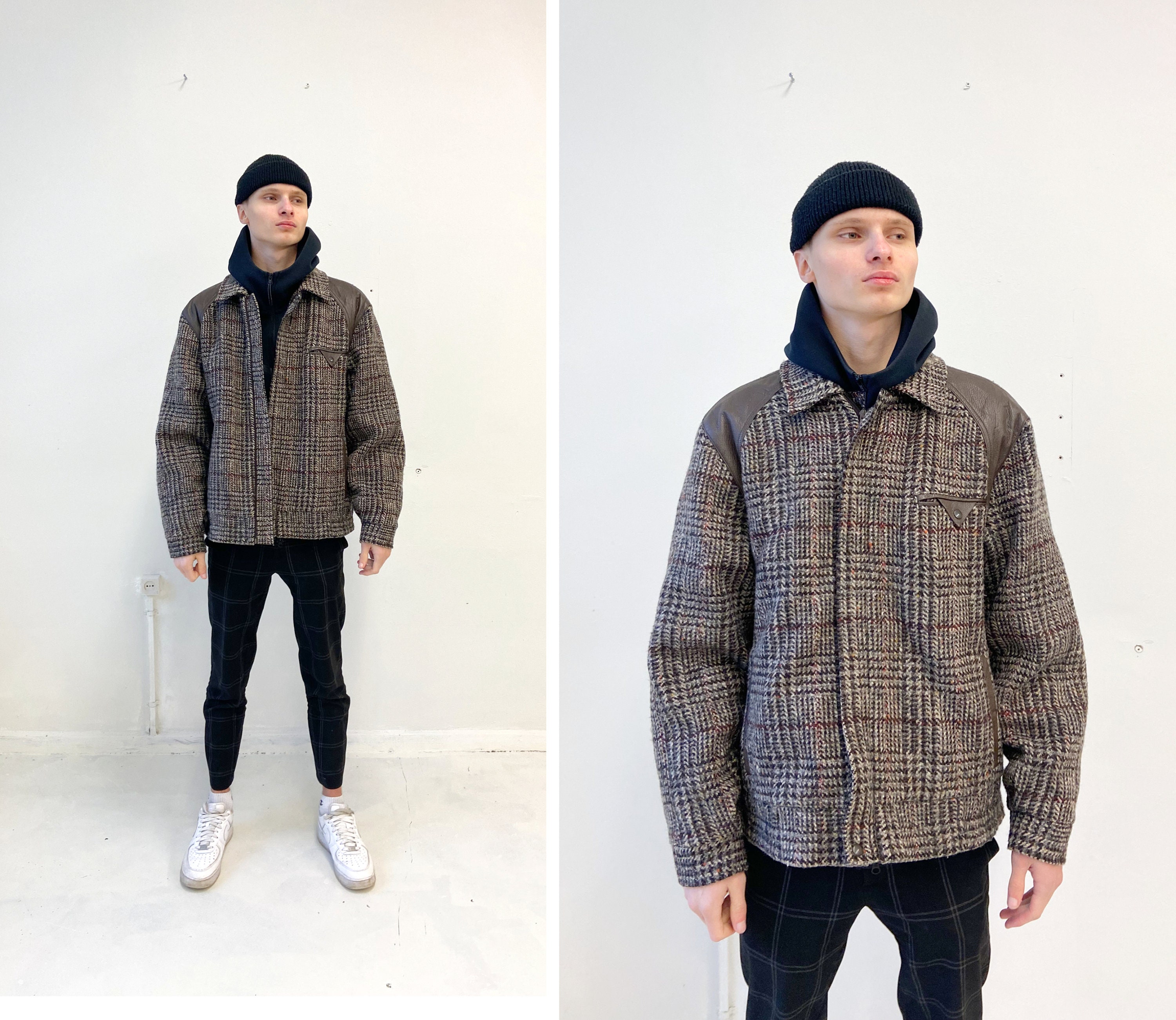 Vintage 90s Plaid Wool Jacket Mens Wool Jacket Wool Brown Etsy
